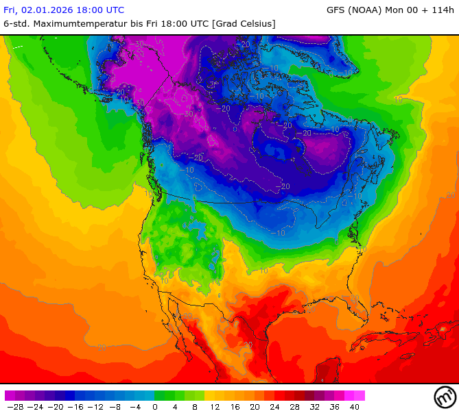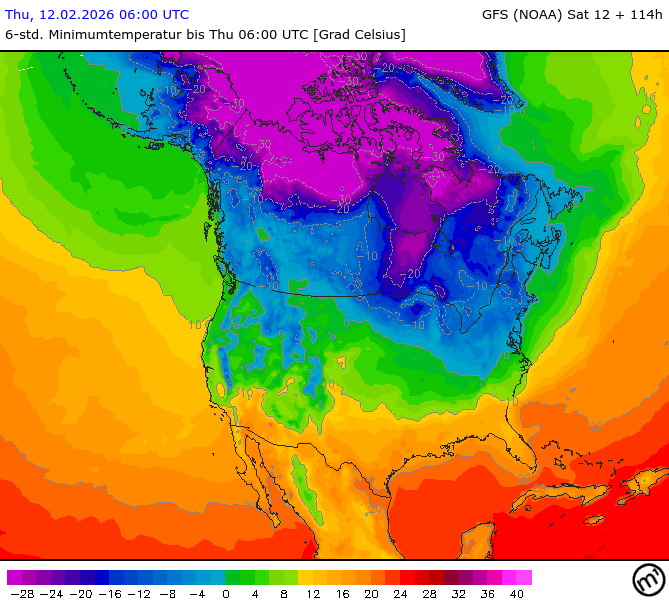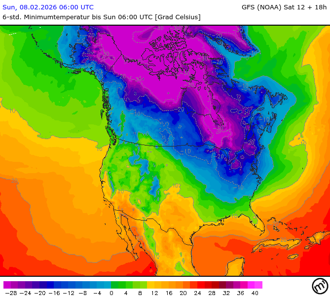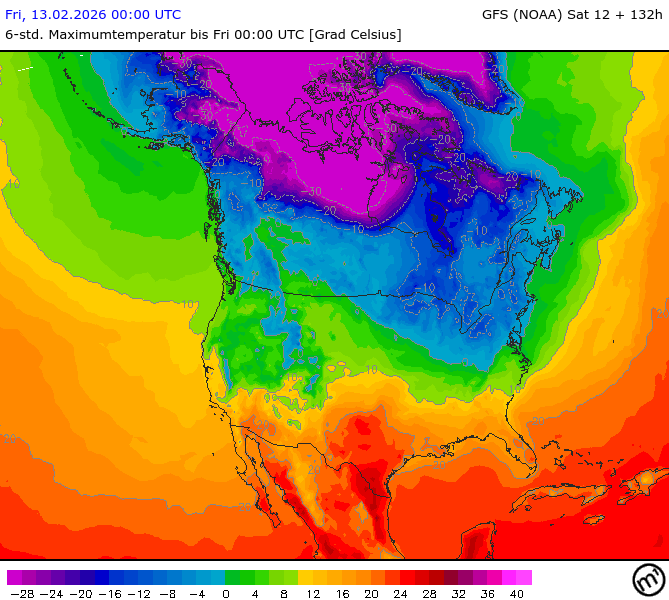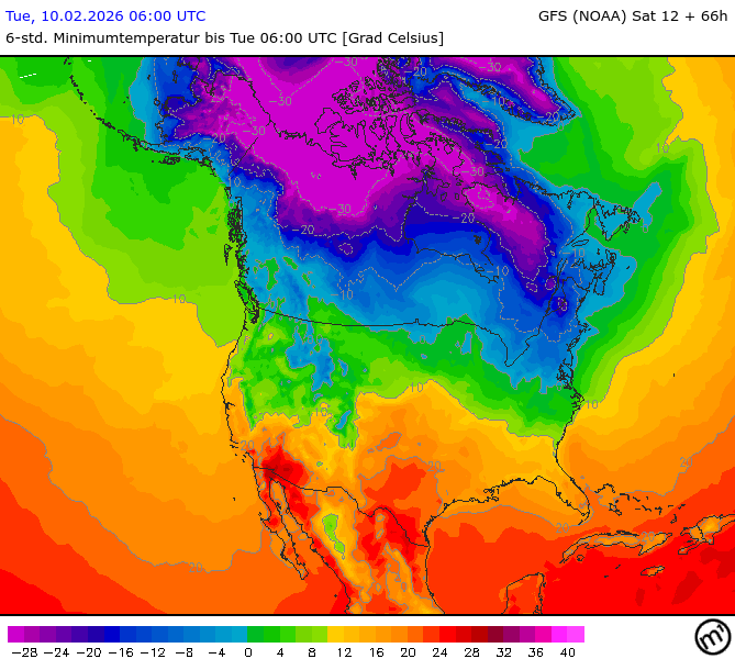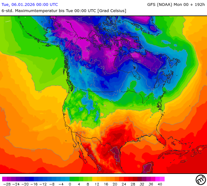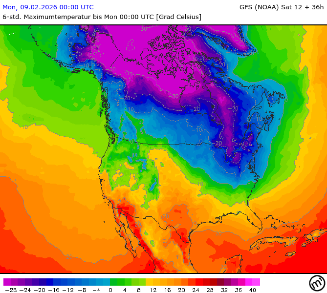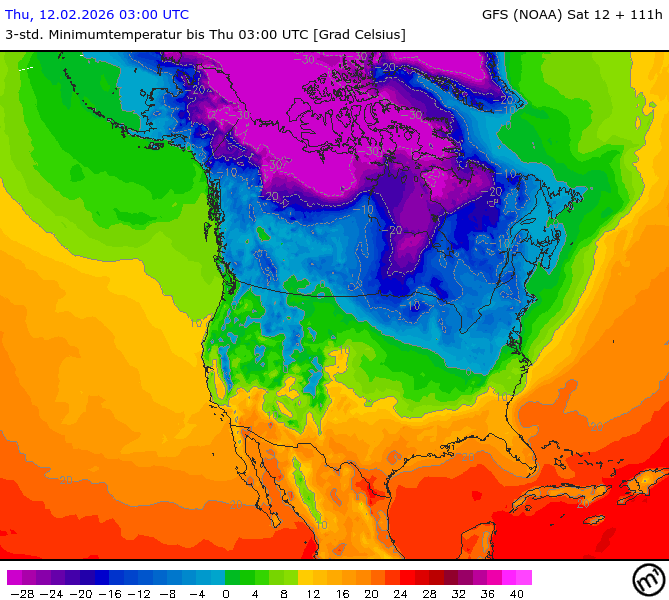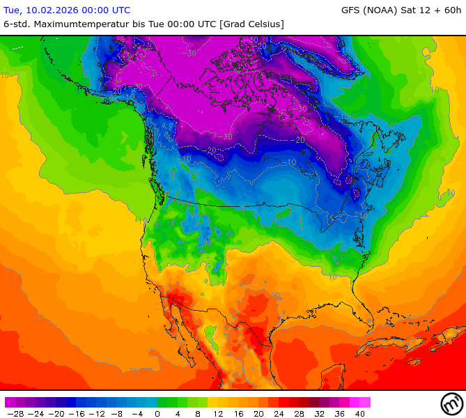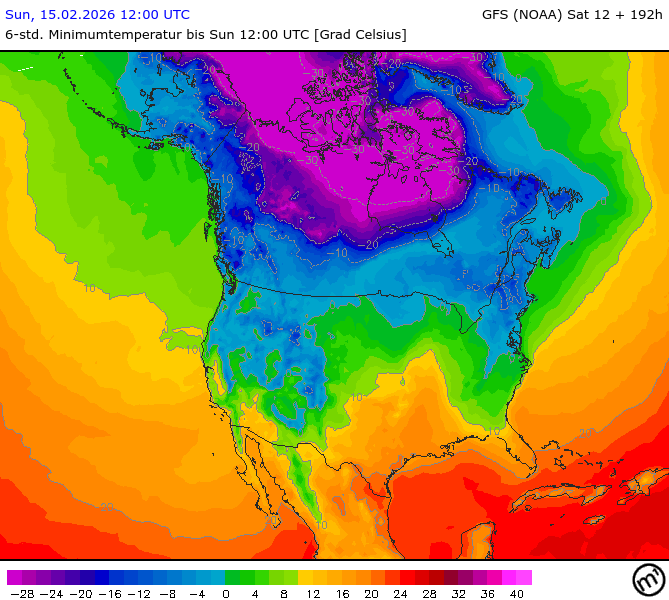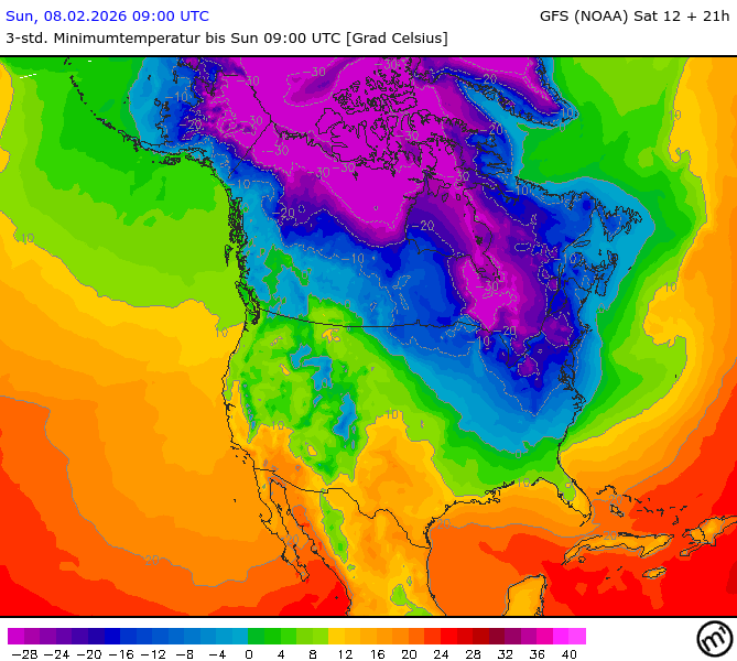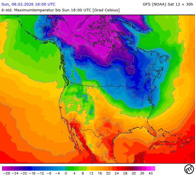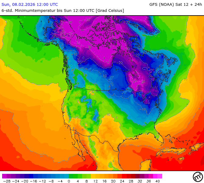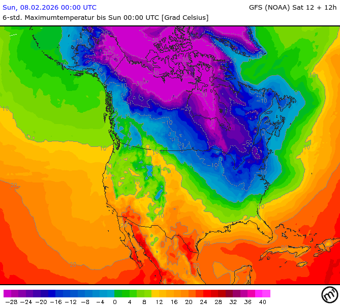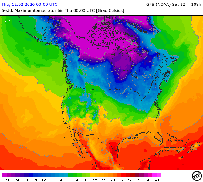 Maximum and minimum temperatures in 2m North America