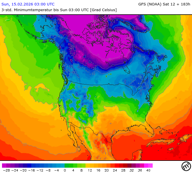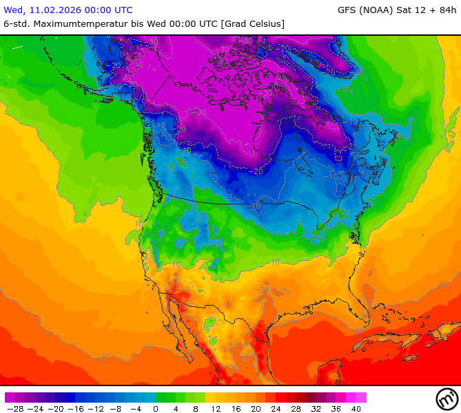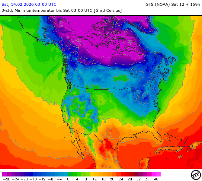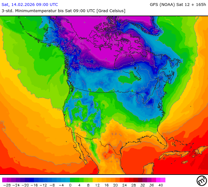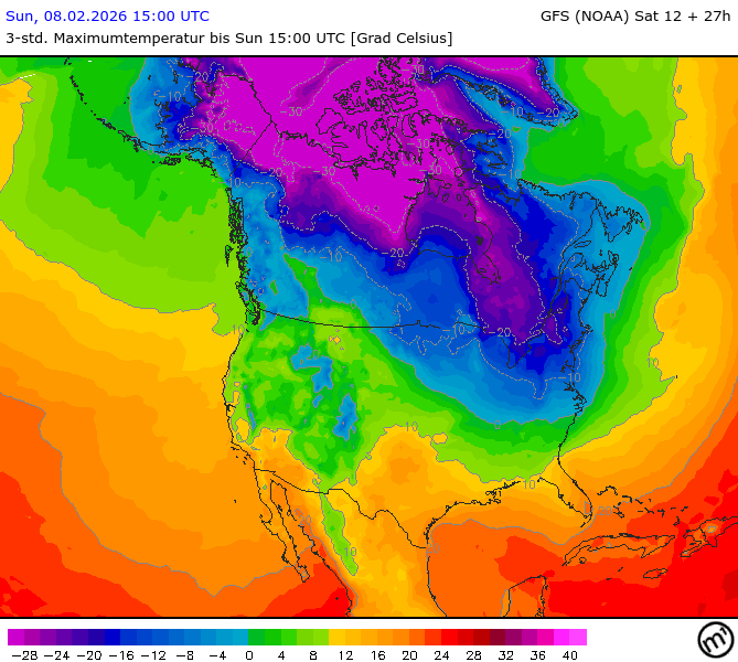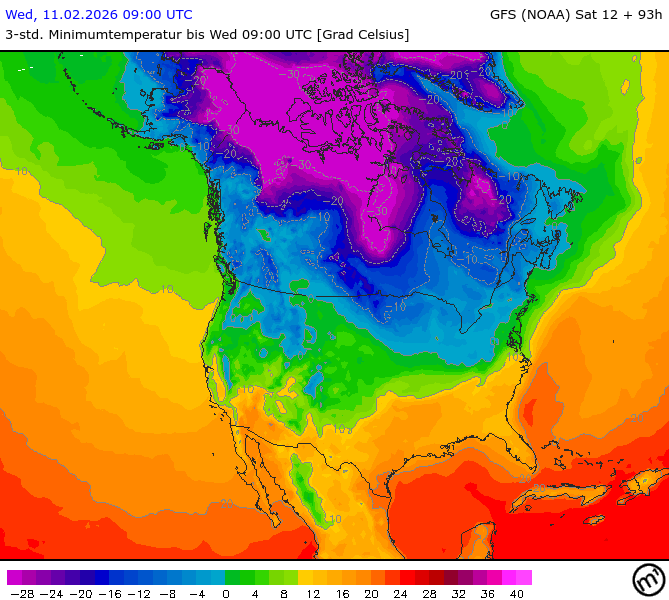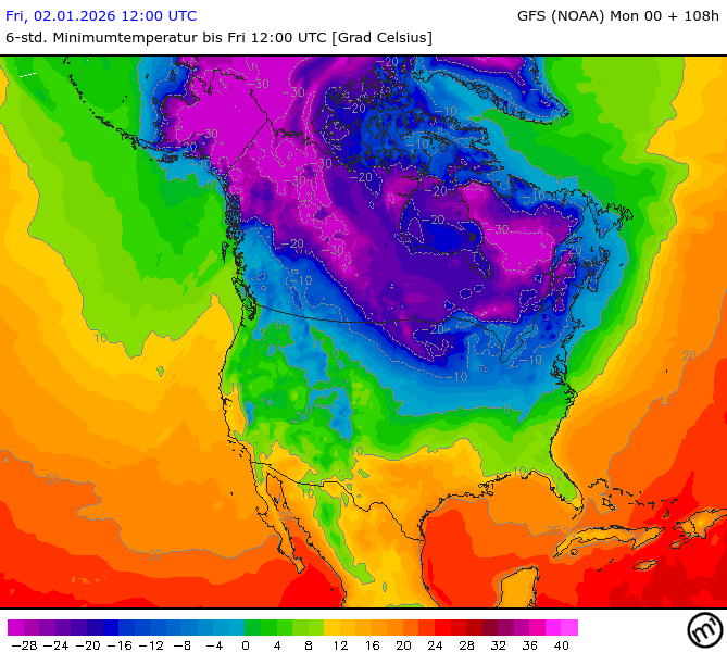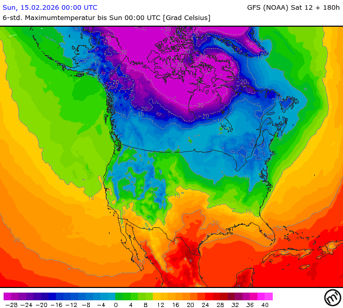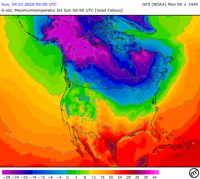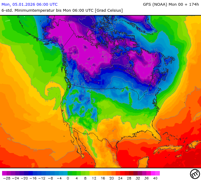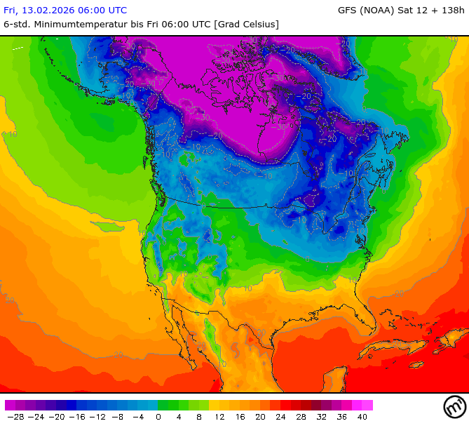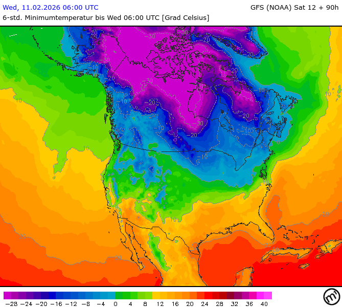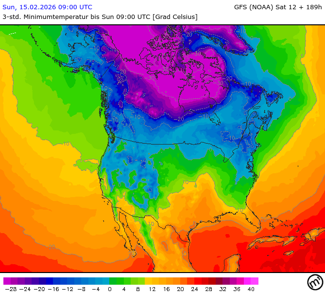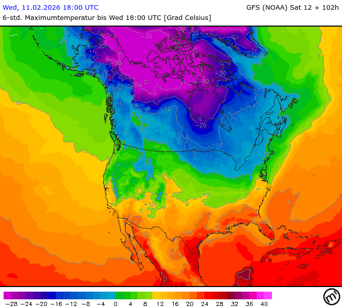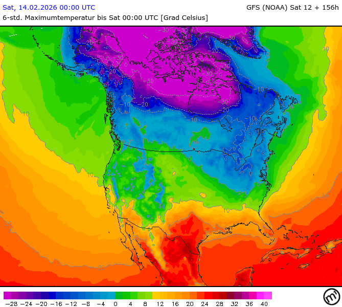 Maximum and minimum temperatures in 2m North America