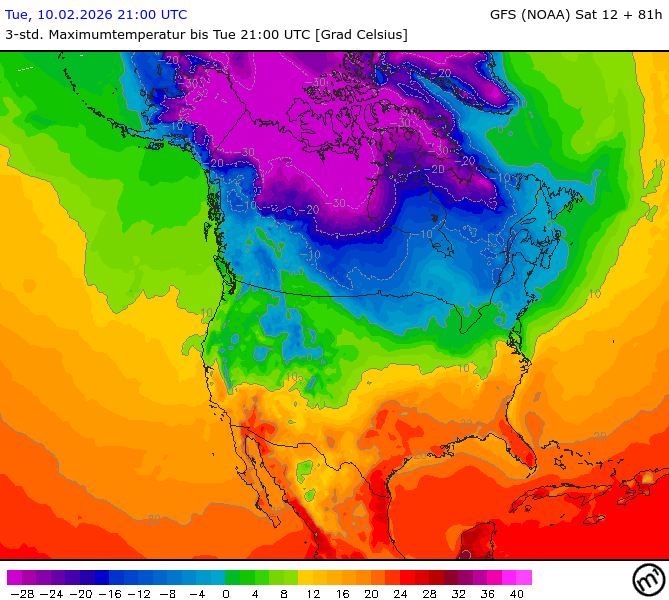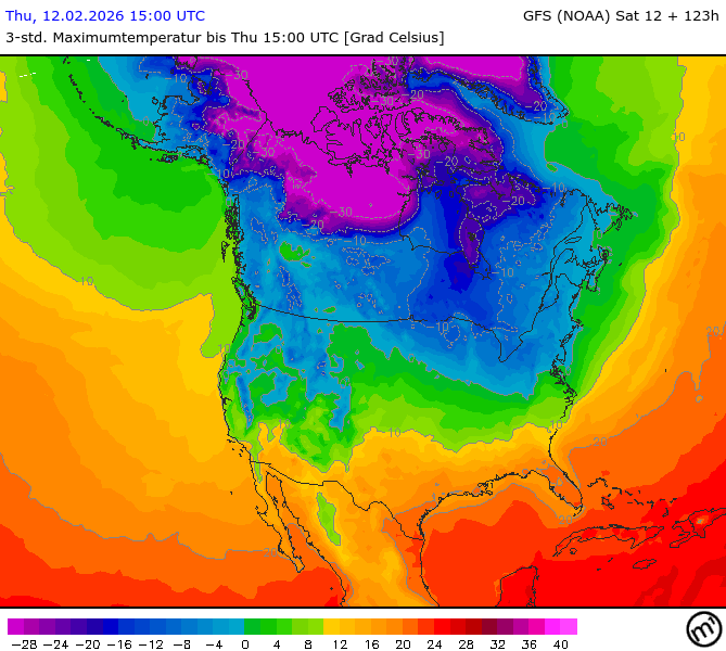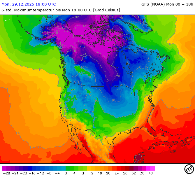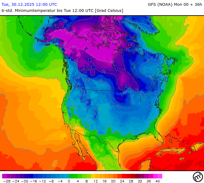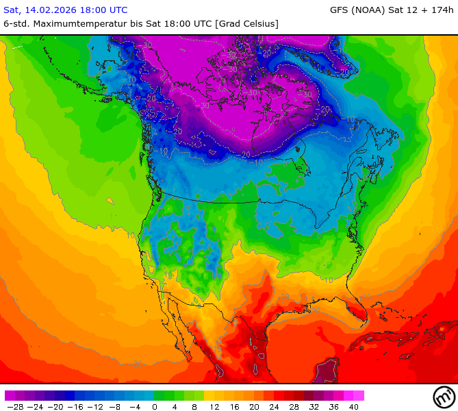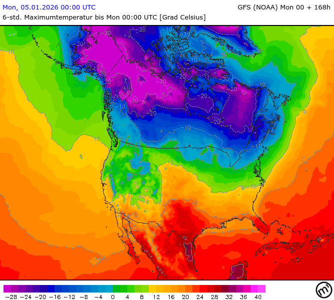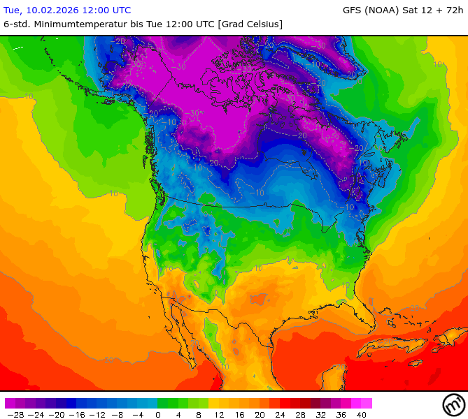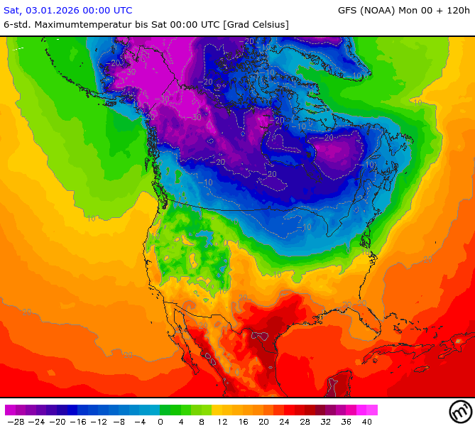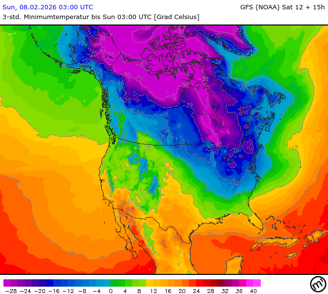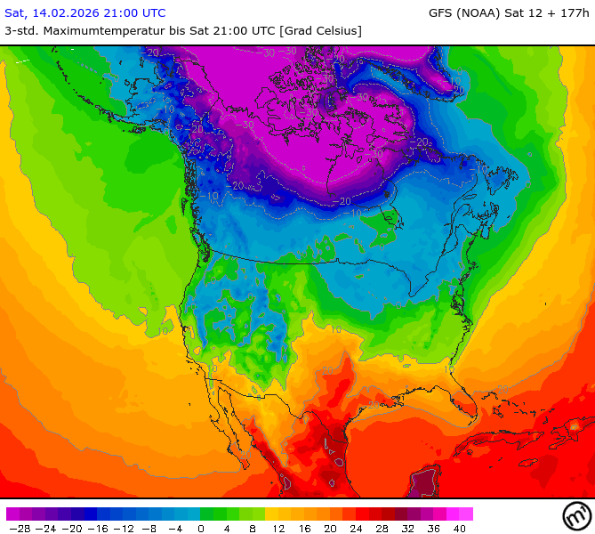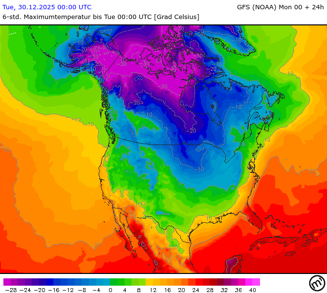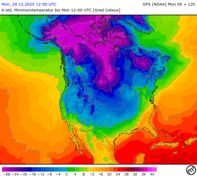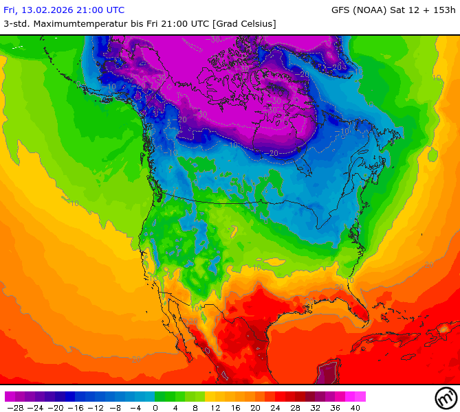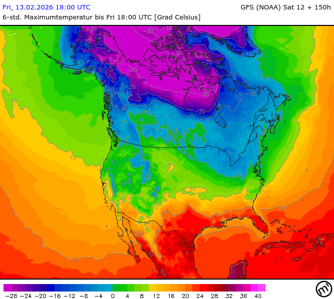 Maximum and minimum temperatures in 2m North America