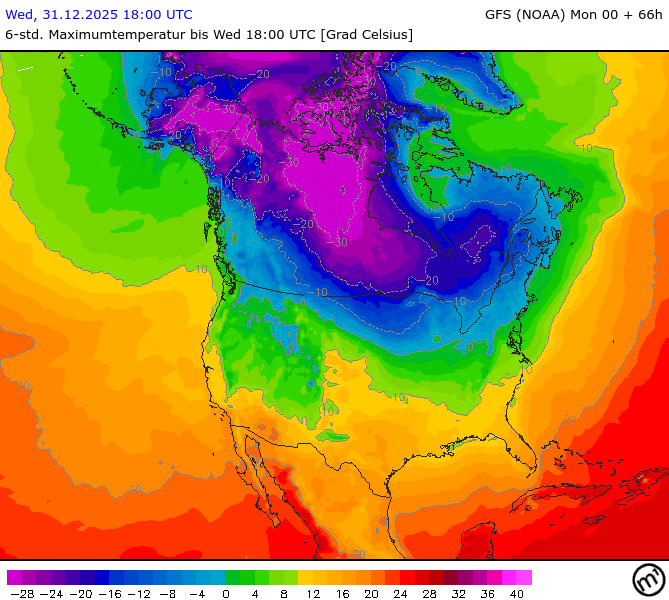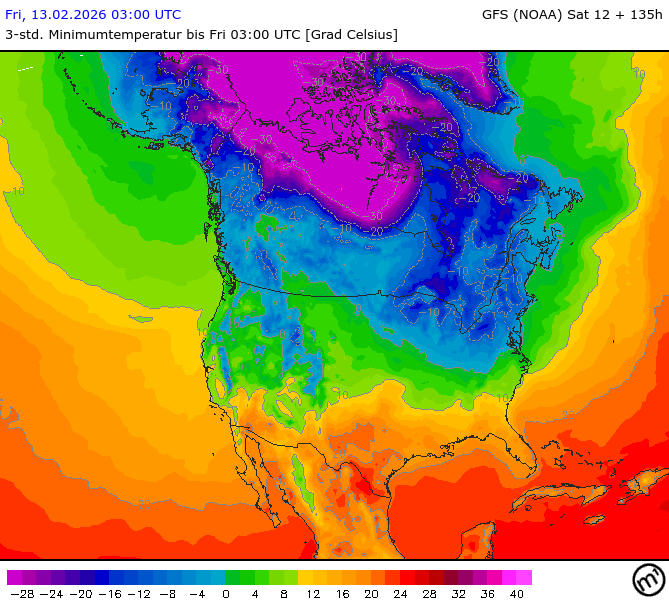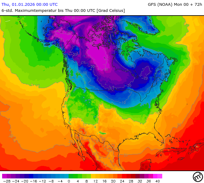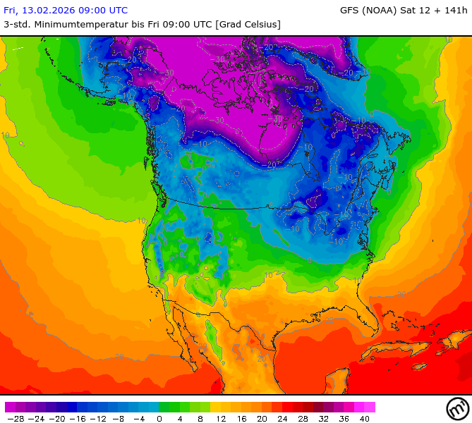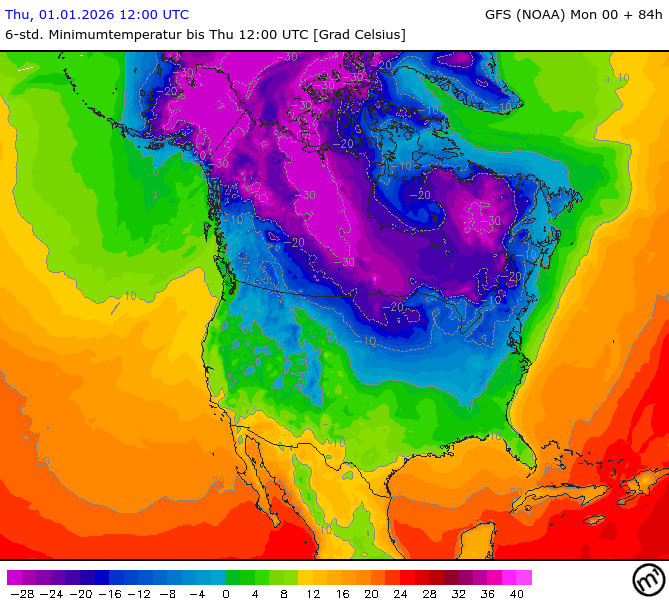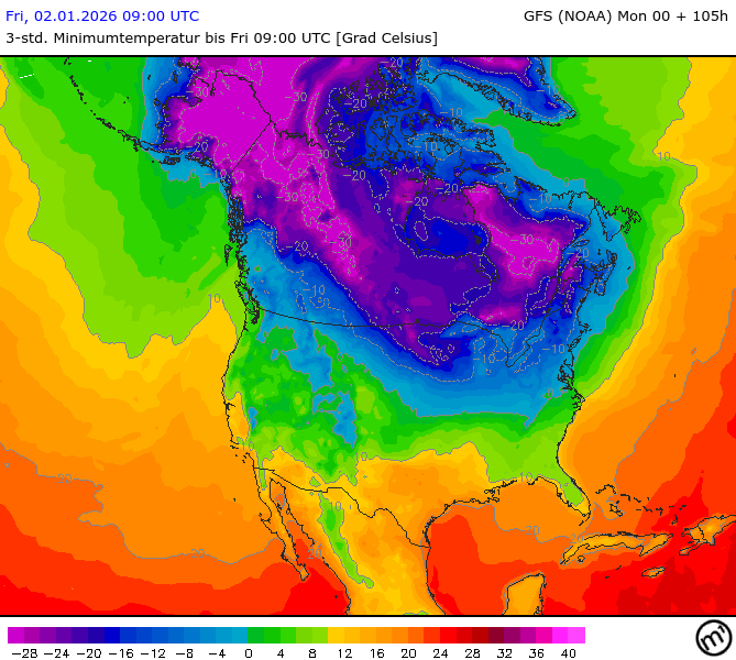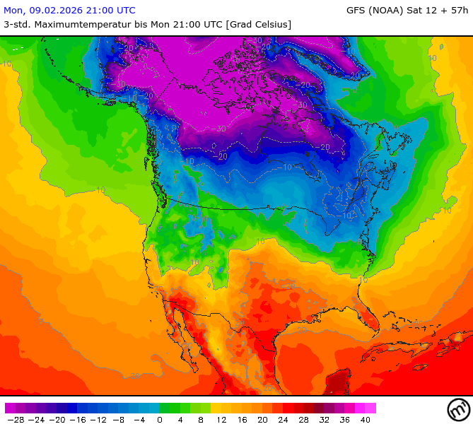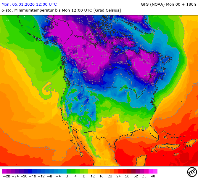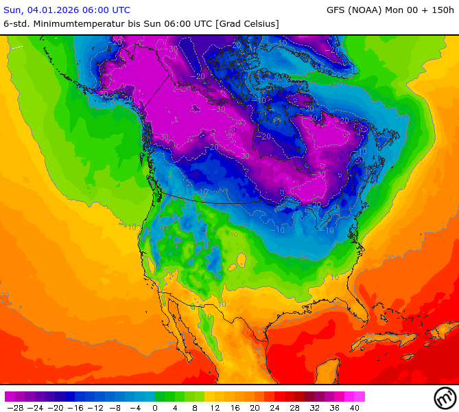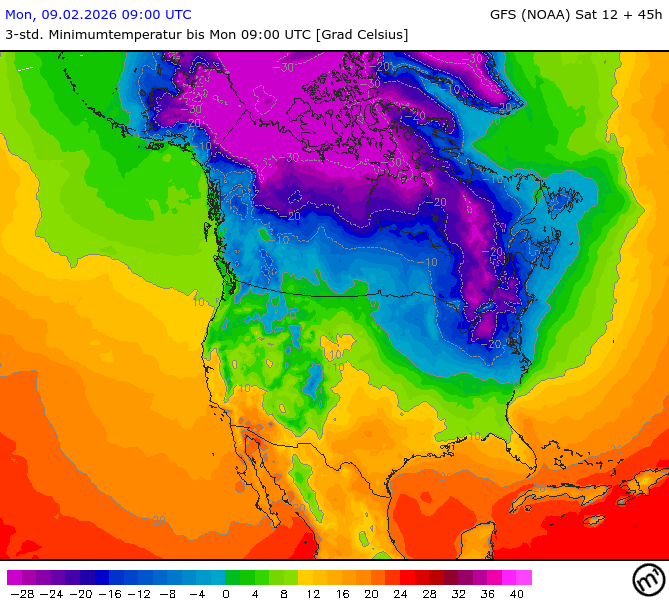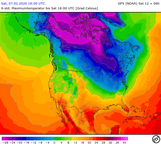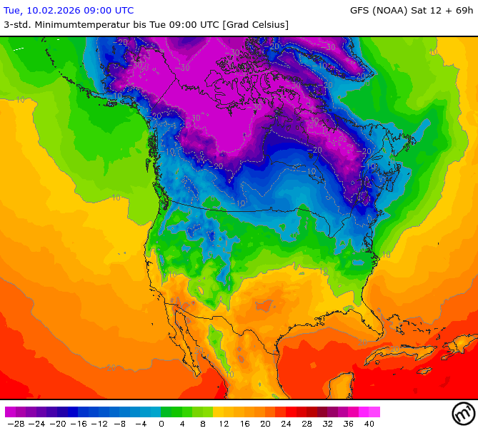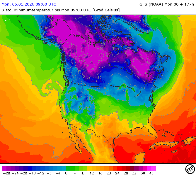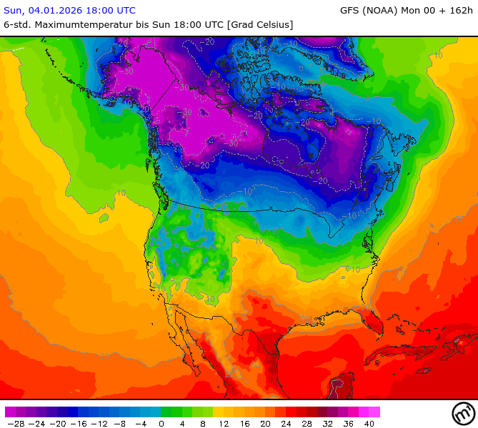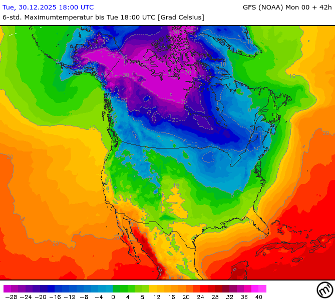 Maximum and minimum temperatures in 2m North America