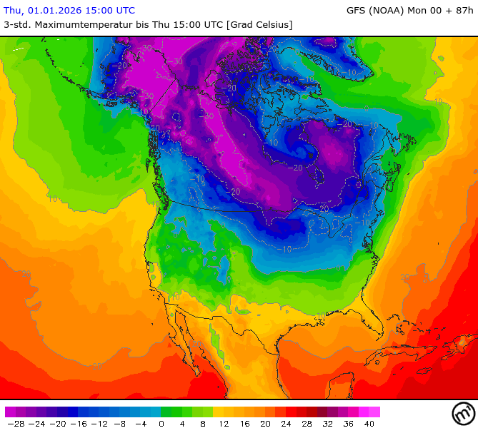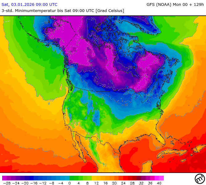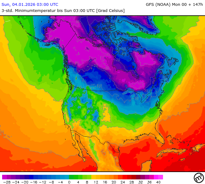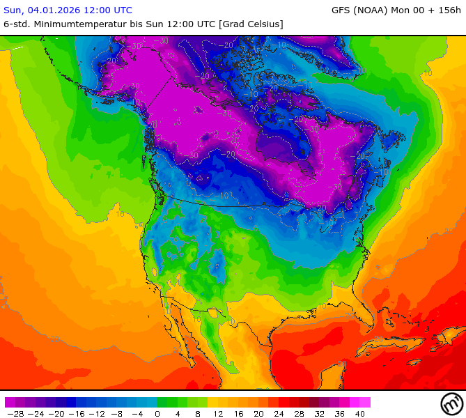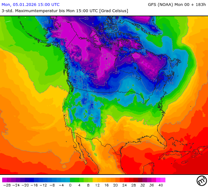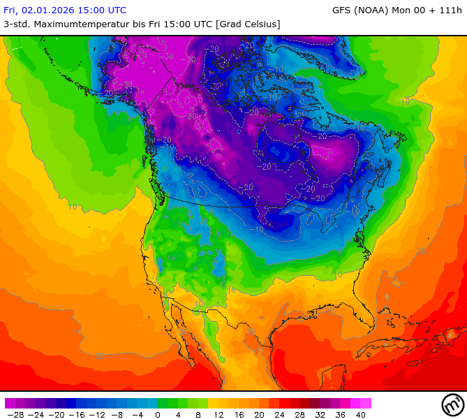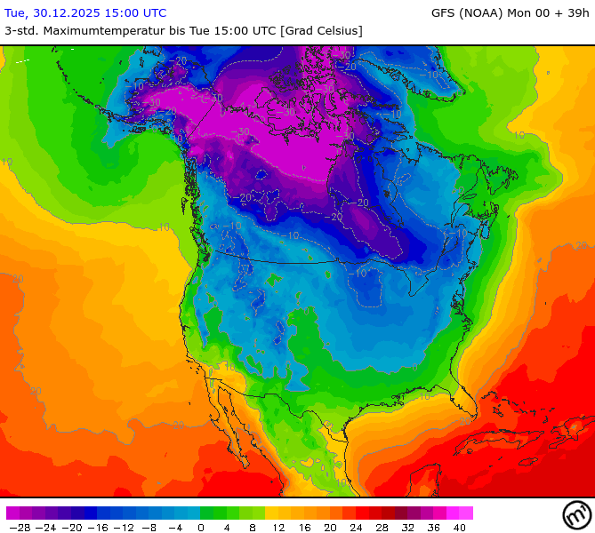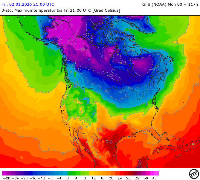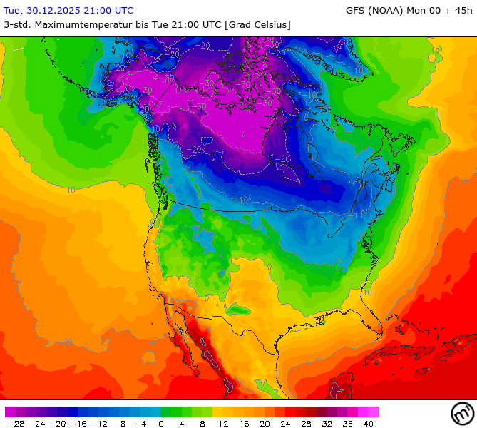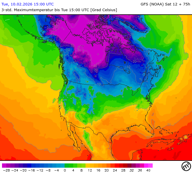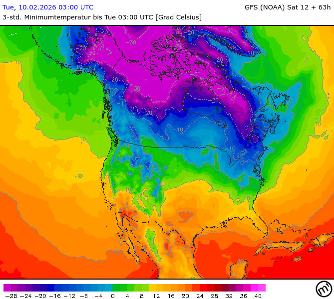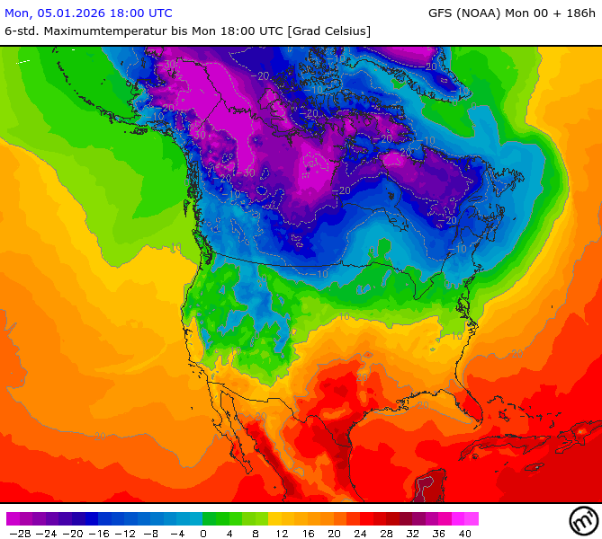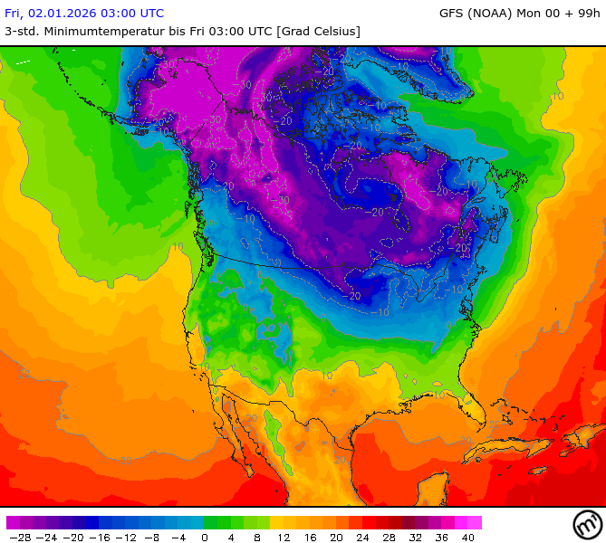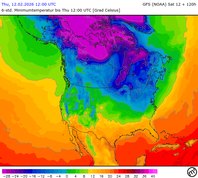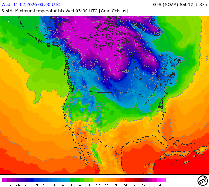 Maximum and minimum temperatures in 2m North America