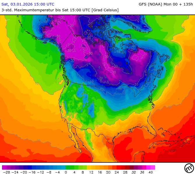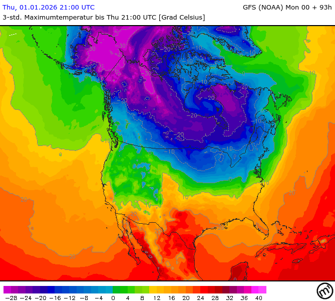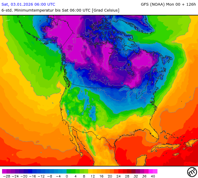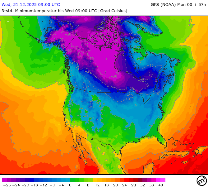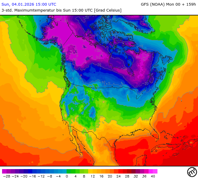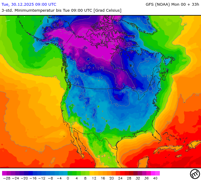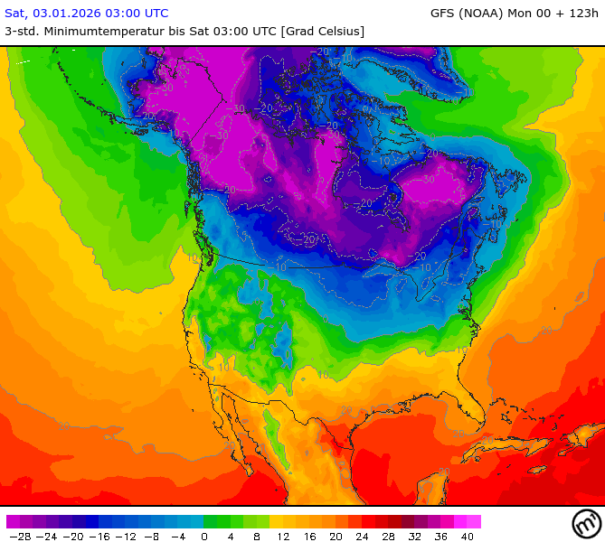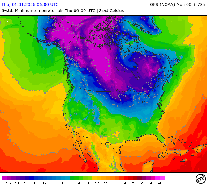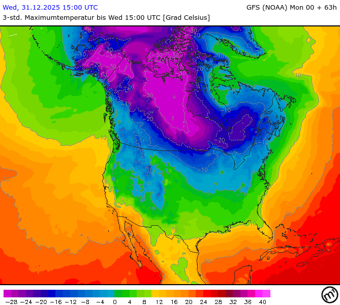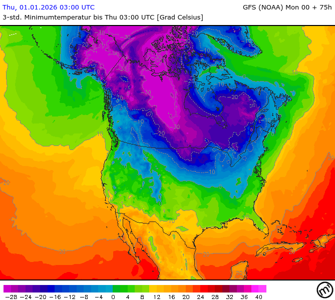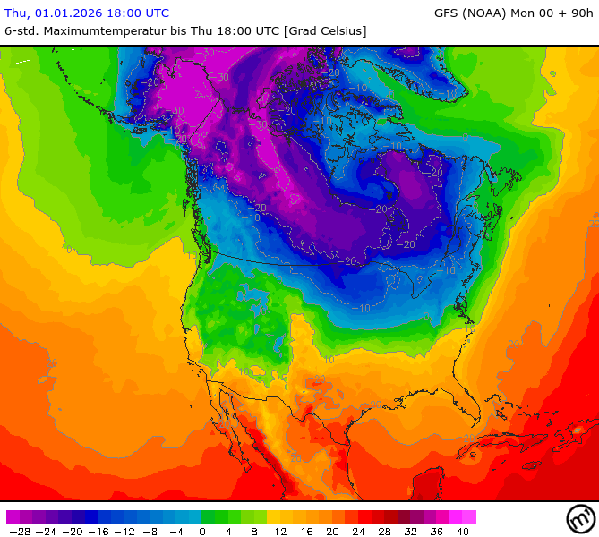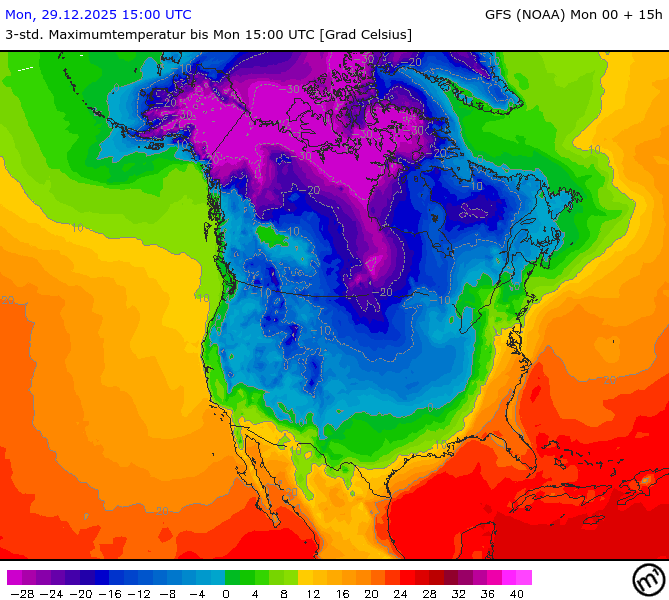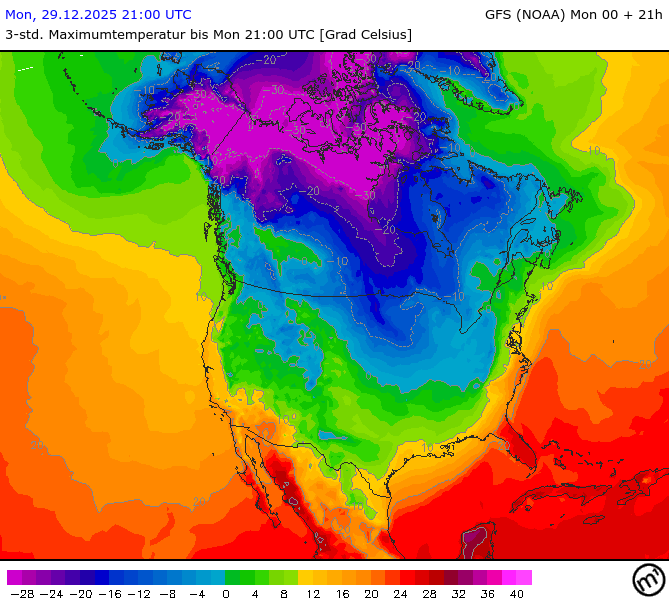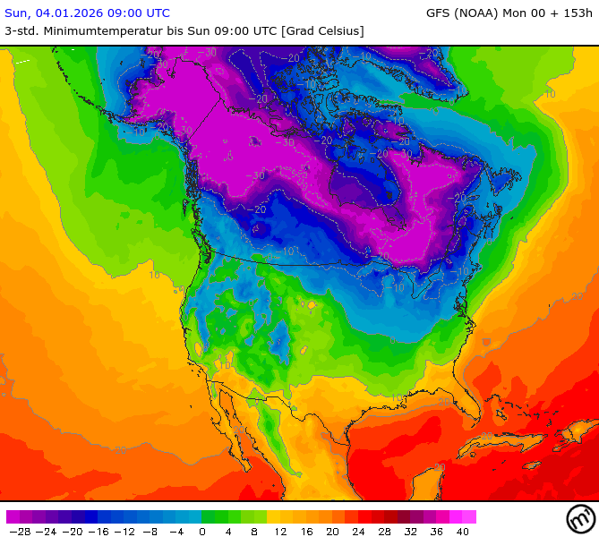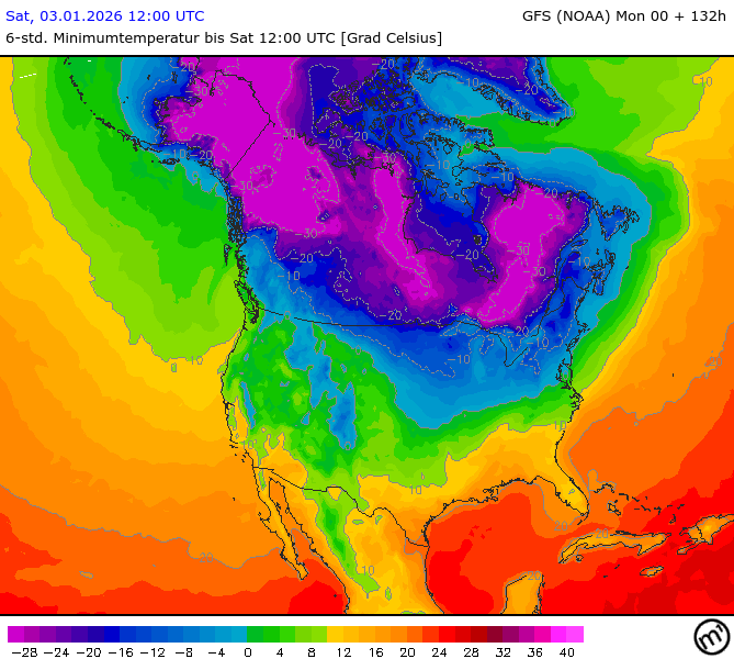 Maximum and minimum temperatures in 2m North America